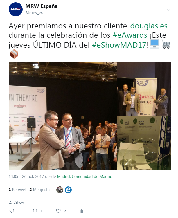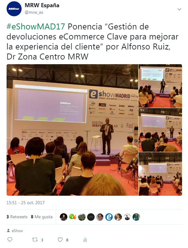 Se han realizado infinidad de actividades y talleres. El Director Regional de la Zona Centro de MRW, Alfons Ruiz, ha ofrecido una conferencia sobre la “Gestión de devoluciones eCommerce: clave para mejorar la experiencia del cliente”. Con esta participación en eShow, MRW ratifica su liderazgo en el sector, así como su experiencia de empresa pionera en comercio electrónico contando con la confianza de más de 15.000 clientes online.